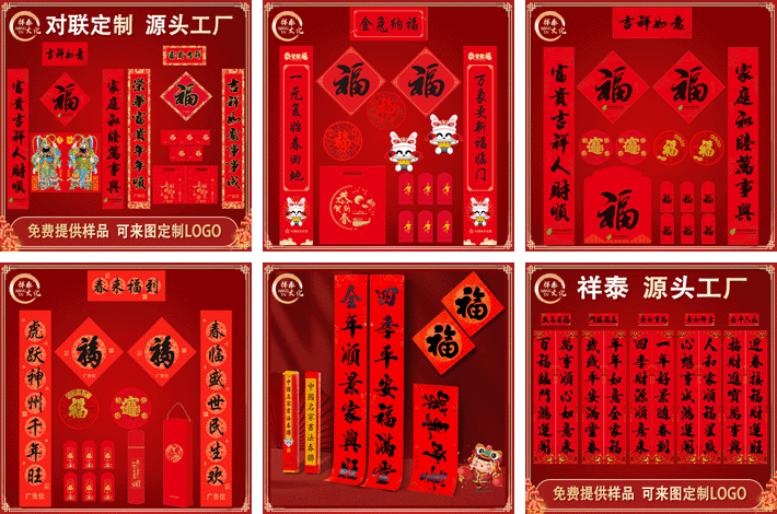 專業(yè)定制廣告對聯(lián)春聯(lián)、福字、窗花、紅包、禮包/禮盒。定制產品:植絨對聯(lián)、植絨福字、燙金對聯(lián)、彩印對聯(lián)、剪紙、利是封、紅包、彩印禮包、無紡布禮袋